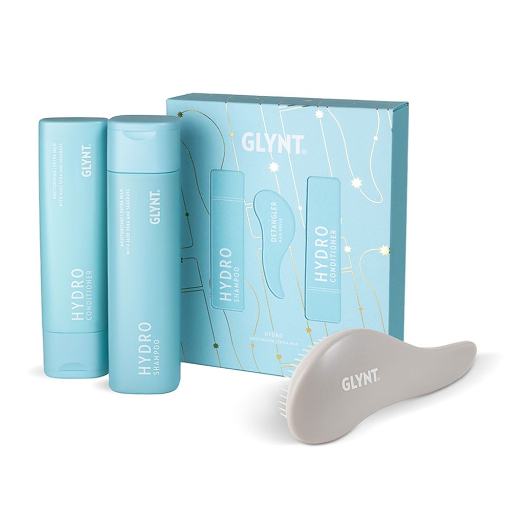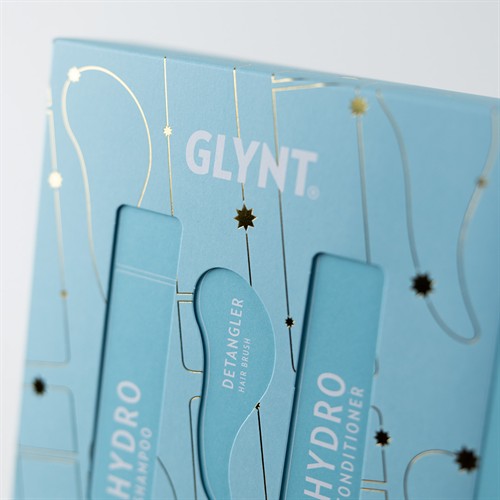 När du köper 24 valfria julboxar (HYDRO, VOLUME eller REVITAL) får du en exklusiv GLYNT utredningsborste på köpet – perfekt att ge bort eller använda i salongen.