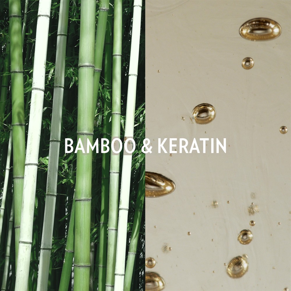 Den näringsrika formulan med bambooextrakt stärker håret och ökar dess motståndskraft, medan vitamin B5 vårdar intensivt och ger en frisk, hälsosam glans. Med hjälp av värmen från föningen kapslas håret in i ett skyddande lager av flytande keratin, vilket gör det starkare och mer voluminöst. Vid regelbunden användning uppnås en märkbar långtidseffekt – håret blir successivt starkare, fylligare och mer glänsande.