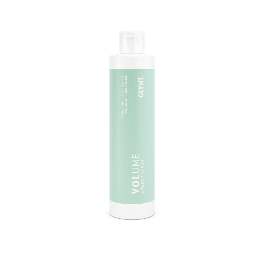 GLYNT VOLUME Energy Spray är perfekt för fint hår. Direkt efter applicering i handdukstorkat hår ger sprayen synbar fyllighet och långvarig glans – utan att tynga ner.
