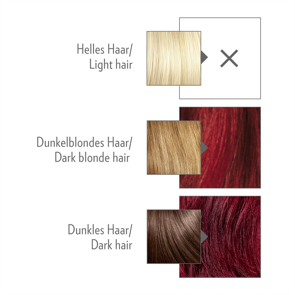 Verkningstid: Låt verka i 5–15 minuter, beroende på önskad färgintensitet.