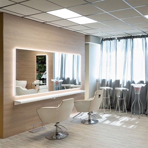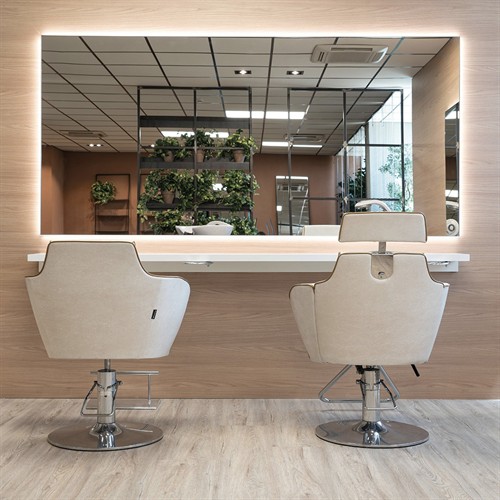 Den generösa spegeln Led Double ger en modern och elegant touch till stylingstationerna.