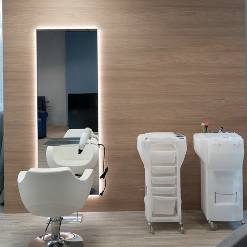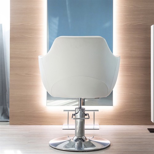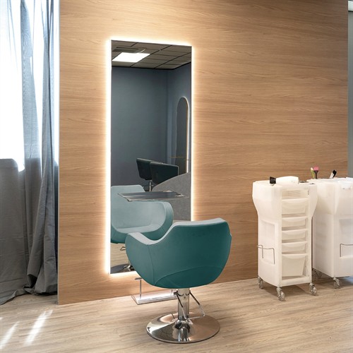 Led New är en spegel med samtida och elegant design, perfekt för frisörsalonger. Dess estetiska mångsidighet gör den lätt att kombinera med alla typer av inredning och stolar, utan att förlora sin elegans. Den helkroppsspegel som ingår framhävs av LED-belysning som lyfter fram detaljerna, och är utrustad med en praktisk integrerad hylla för hårfön.