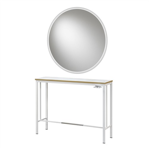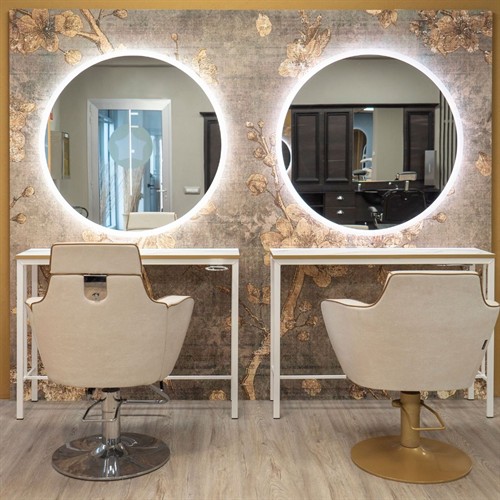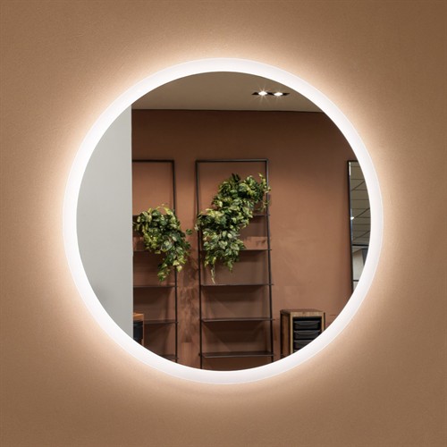 Stargate är en rund spegel med en sandblästrad kant och LED-belysning, som kombinerar sofistikerad design med modern funktionalitet.