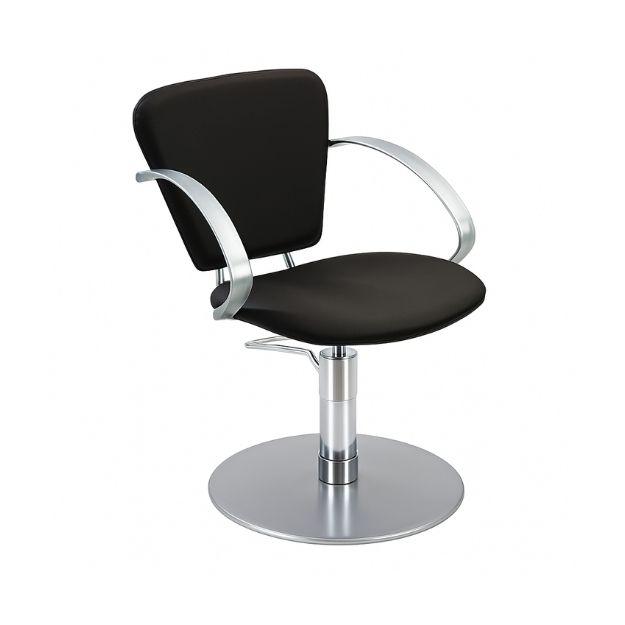 Stolen erbjuder 360° rotation med låsfunktion samt hydraulisk höjdjustering, vilket gör det möjligt att enkelt anpassa sittpositionen för både kund och frisör. Den robusta, runda basen i krom ger en stadig och hållbar konstruktion som är lätt att rengöra. Standardutförandet i svart skai (läderimitation) ger ett tidlöst och professionellt utseende som passar alla salonger. Flera klädselalternativ finns tillgängliga för att matcha din inredning.