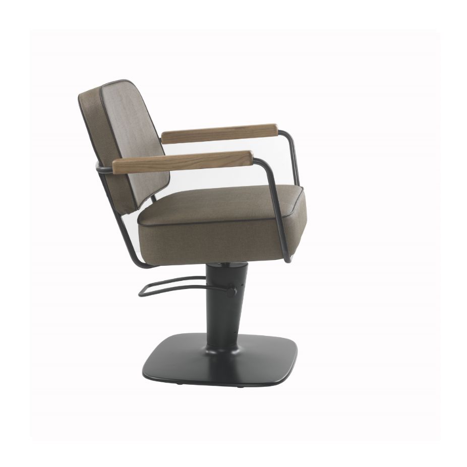 Den tidlösa vintage-stilen förstärks av vackra träarmstöd, mjukt stoppad sits och kontrasterande sömmar som ger ett elegant formspråk. Liberty erbjuder både stabilitet och komfort, vilket gör den till ett pålitligt och prisvärt val för professionella frisörer.