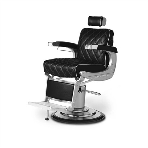 Med reglerbart ryggstöd och uppfällbart fotstöd skapas en naturlig och behaglig behandlingsposition. Den fjäderbelastade sitsen och fullt vadderade armstöd ger förstklassig kundkomfort, medan den 360° roterbara basen (med lås) gör arbetet smidigt och ergonomiskt för barberaren.