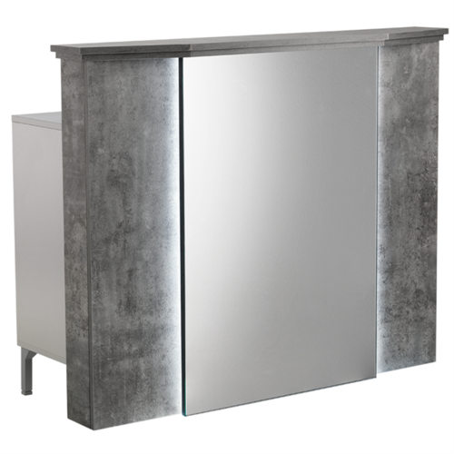 Fuji är tillverkad i laminerat trä och kan anpassas med framsida i träfinish, spegelglas eller imitationsläder, vilket ger stor flexibilitet att matcha salongens uttryck. Baksidan är tillverkad i grått laminerat trä och utrustad med låsbara lådor, vilket ger säker och organiserad förvaring. För en extra exklusiv touch finns även ett LED-kit som tillval.