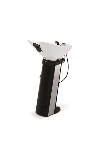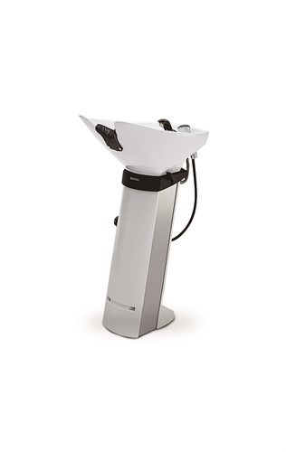 Belmont NRS schamponeringspelare . Utrustad med termostatblnadare, vippbart tvättfat, nackskydd. Silver eller svart/vit pelare.