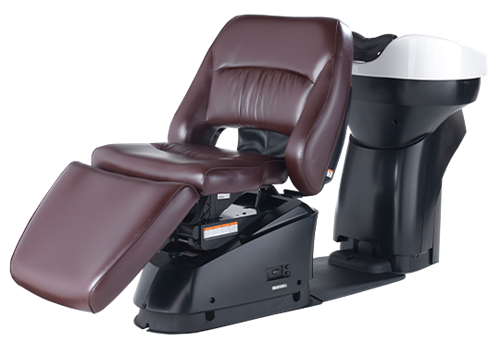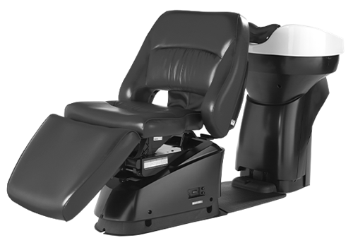 Stolen är ergonomiskt utformad med dubbla gel-fyllda nackkuddar och huvudkuddar, samt en keramisk tvättskål som ger både komfort och hållbarhet. Rörelserna är helt motoriserade och kan styras enkelt via fotkontroll, vilket ger smidig och exakt justering utan att avbryta behandlingen.