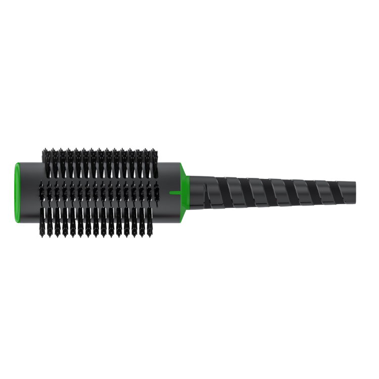 Maximera din styling med Jäneke Rundborste med spiralhandtag 65mm! Denna stora rundborste är tillverkad i aluminium och har ett smart koniskt spiralformat handtag som ger extra stöd och komfort när du rullar borsten i håret. Perfekt för att skapa volym, rörelse och en slät finish, särskilt på längre eller tjockare hår. Borsten är lätt, värmetålig och finns i fyra färgkodade storlekar, så du alltid snabbt hittar rätt borste för din styling.