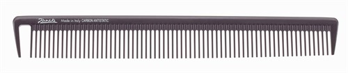 En robust och lättviktig klippkam från Jäneke, handgjord av exklusiv kolfiber med antistatiska egenskaper som motverkar friss och ger en skonsam kamning. De rundade tänderna glider lätt genom håret utan att slita eller skada huden. Kammen tål både värme och kemikalier, vilket gör den perfekt för både professionell användning och för dig som vill ha det bästa hemma. Med rätt skötsel håller denna kam mycket länge och levererar ett perfekt resultat varje gång.