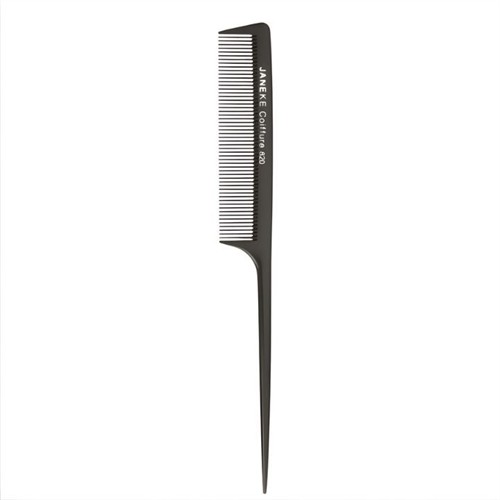 Fintandad kam med spets från Jäneke, utvecklad för exakt sektionering, slingor och precisionsarbete. Den långa spetsen gör det enkelt att dela upp håret i rena sektioner, vilket ger full kontroll vid färgning, styling och klippning.