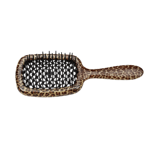 Janeke Superbrush Leopard är en elegant hårborste som kombinerar italiensk design med professionell prestanda. Den unika ventilerade konstruktionen gör föning snabbare och skonsammare genom att låta luft passera jämnt genom håret. De mjuka, flexibla piggarna reder ut håret utan att skada fjällskiktet, medan det exklusiva leopardmönstret ger en lyxig känsla både i handen och på salongshyllan.