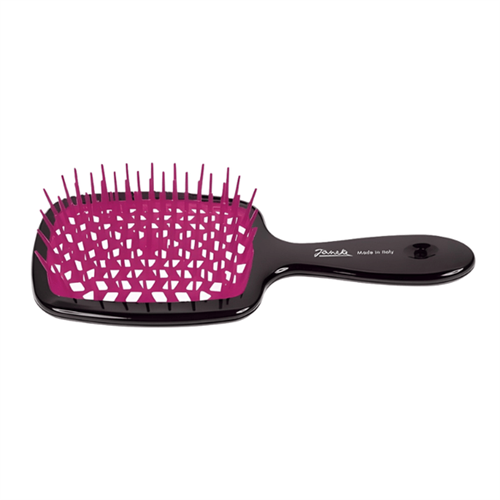 Jäneke Superbrush Svart/Rosa är en ikonisk hårborste tillverkad i Italien, skapad för professionell och skonsam utredning av alla hårtyper. Den ventilerade designen gör att luftflödet sprids jämnt vid föning, vilket minskar risken för överhettning och skador. De flexibla piggarna masserar hårbotten varsamt och hjälper till att bevara hårets naturliga glans.
