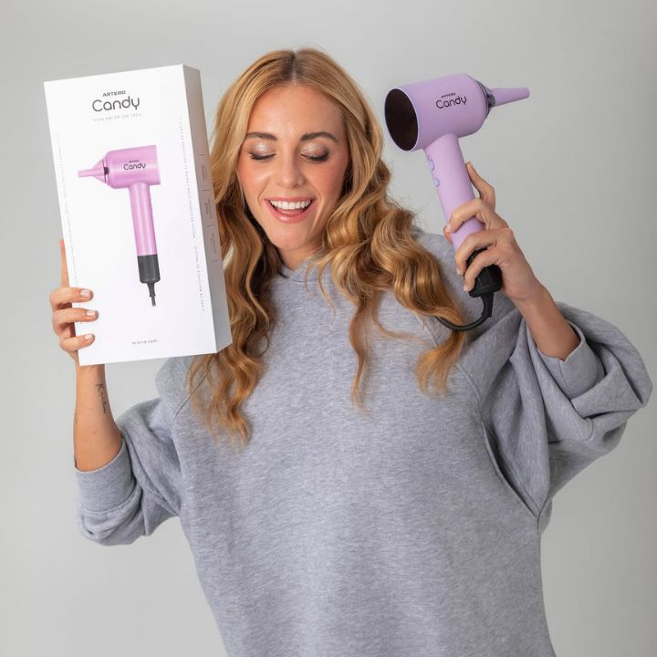 Artero Candy Hårfön i lila färg är en professionell lätt och tyst hårfön som ger maximal kontroll och komfort i salongen. Utvecklad för frisörer som arbetar intensivt varje dag kombinerar den låg vikt med kraftfull prestanda, vilket gör det möjligt att arbeta snabbt, effektivt och skonsamt utan att belasta kroppen.