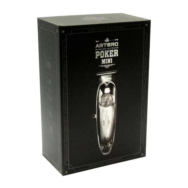 Artero Poker Mini Trimmer är en kompakt och kraftfull professionell trimmer utvecklad för frisörer som kräver hög precision och full kontroll i detaljarbete. Den slitstarka konstruktionen i kombination med ett stilrent silverutförande gör den till ett pålitligt verktyg för exakta linjer, konturer och fintrimning nära huden.