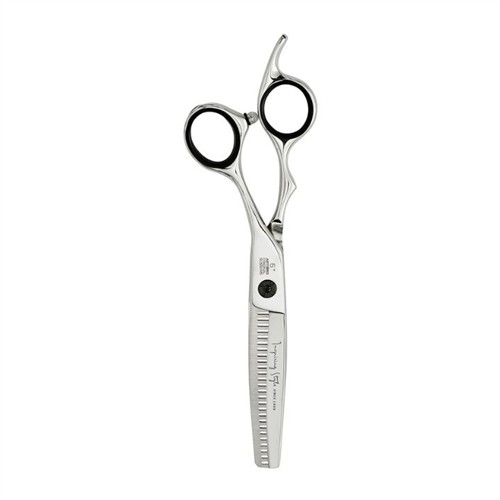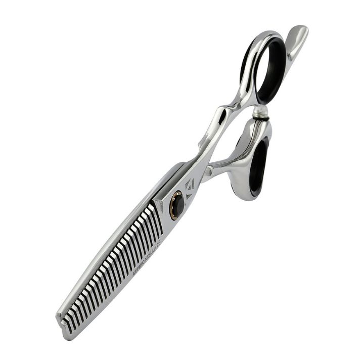 Saxens ergonomiska design med semi-offset handtag minskar belastningen på hand och handled, vilket gör den bekväm att arbeta med även under långa pass. De konkava bladen i kombination med välbalanserade tänder ger en jämn och kontrollerad uttunning, vilket gör det enkelt att skapa naturlig textur, reducera tyngd och forma mjuka övergångar i håret.