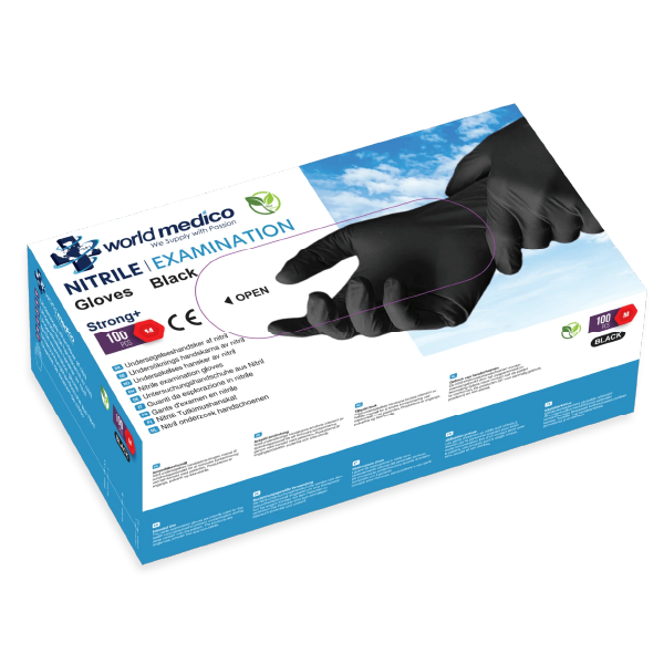 Svarta nitrilhandskar i hög kvalitet med lite längre skaft för handlederna. Extra slitstarka. Finns i Small, Medium och Large.